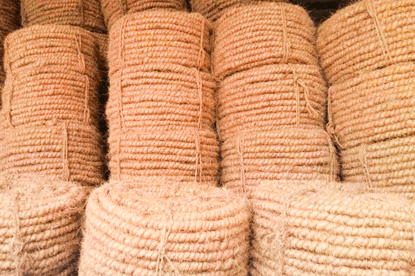 2-ply coir yarn with polypropylene thread, made for Korea’s oyster farming industry.